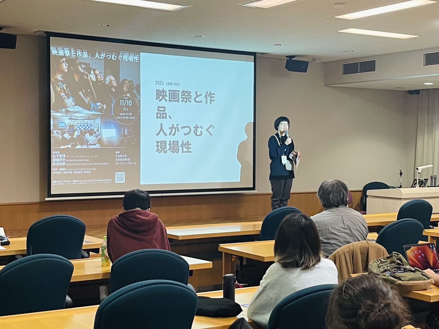 2023年11月に名古屋大学で開催したセミナー「映画祭と作品、人がつむぐ現場性」の司会風景