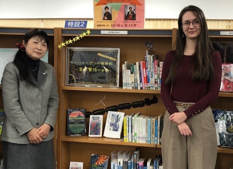 学長から一言:本学の交流協定校であるブルガリアのソフィア大学から来日し、本学の特別研究員として宮沢賢治研究に日々打ち込んでいるクリスティーナ・イヴァノヴァさんが、いつまでも思い出に残る滞日研究生活の大成果をあげました。岩手大学人間社会学部の宮沢賢治いわて学センター主催の研究会での講演です。長年にわたって研鑽を積んできた日本語を駆使して、きっと聴く人を虜にする発表だったことでしょう。残された滞在期間中に、青木美保名誉教授の指導の下、素晴らしい博士論文を仕上げてください。