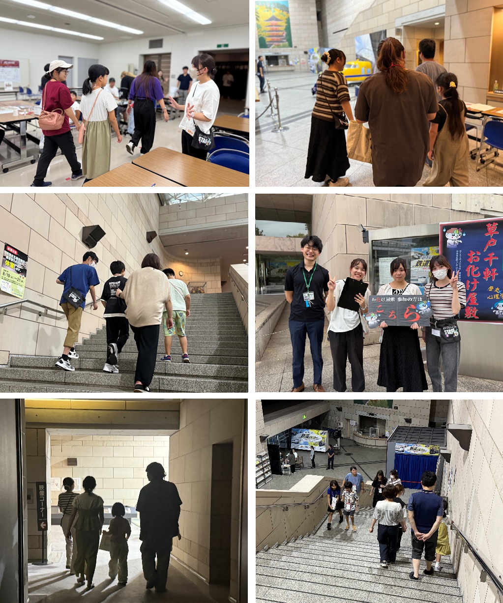 草戸千軒お化け屋敷の魅力は、なんといっても「歴史」と「心理学」のコラボ企画であること。「歴史」にも「心理学」にも触れながら、夜の博物館での貴重な体験ができることにあります。来場者の皆さんには、お化け屋敷に入場する前に歴史クイズに挑戦していただきました。小学生には少し縁遠い学問かもしれませんが、少しでも「歴史」と「心理学」が好きになってもらえたら。そんな気持ちを込めて企画しています。