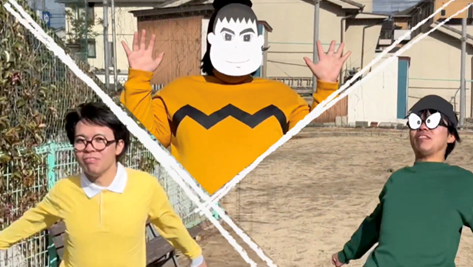 お笑いコントが面白かっただけでなく、グリーンバックを使った背景合成にも頑張ってチャレンジしていました。