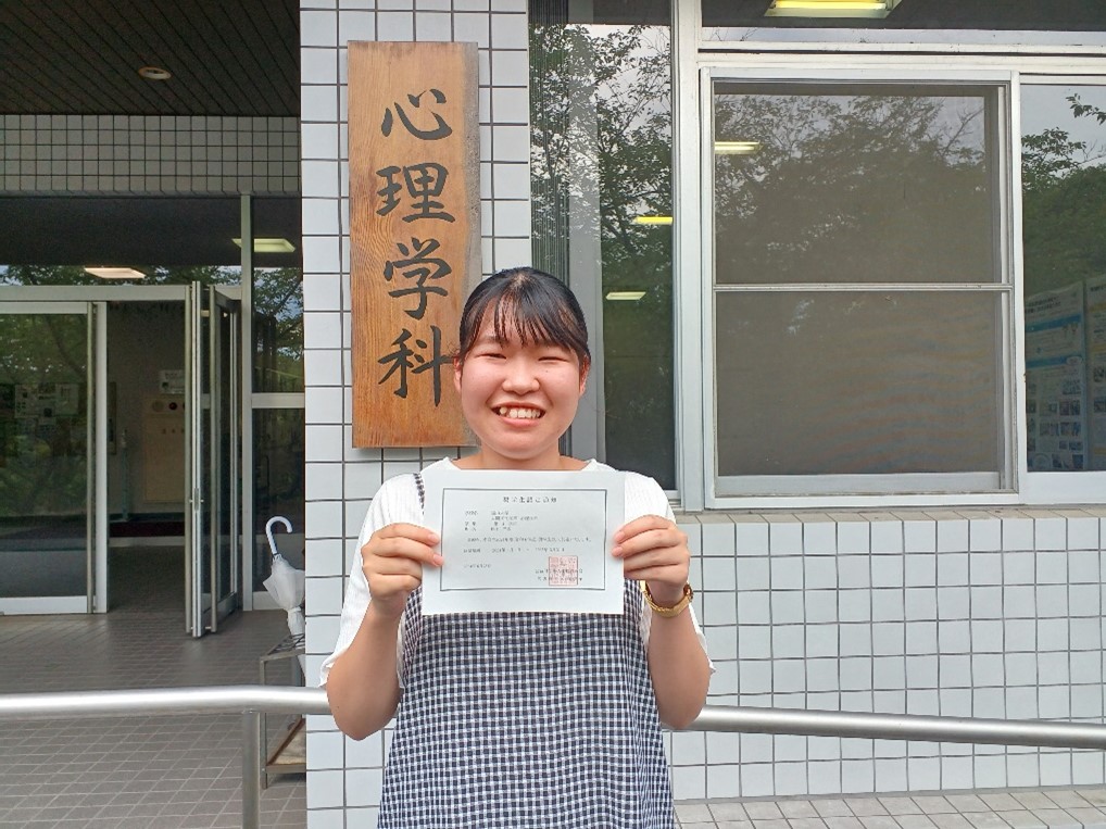 心理学科4年生の松下光希さんが公益財団法人小松育英会の給付奨学生に認定されました。公益財団法人小松育英会は、株式会社エフピコ創業者である小松安弘氏が平成18年12月に、広島県下の指定学校に在籍する生徒・学生への経済援助を通じて、広島県の教育・文化・経済の振興に寄与する豊かな人間性と創造性を持った人材を育成することを目的に設立されました。同財団の奨学生には、人物・学業ともに優秀な学生が認定されます。