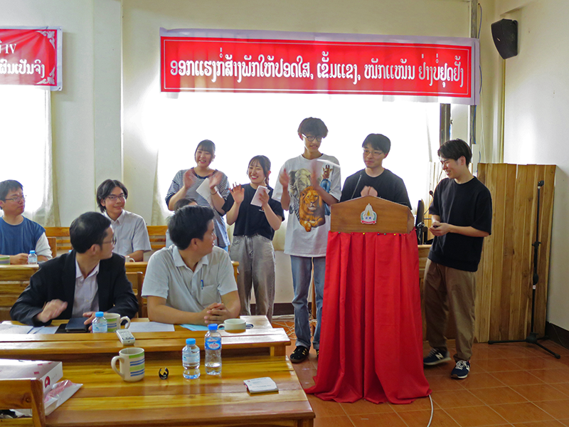 スファヌボン大学では吉崎准教授よりブドウ栽培・ワイン醸造研究に関する研究発表を行いました。現地の果実などを用いてワイン造りを試行されている先生がおられて、大変興味をもって聞いてくれました。また、日本の焼酎麹と現地のモチ米を用いた新しい蒸留酒の共同開発を提案し、今後両大学で取り組むことになりました!