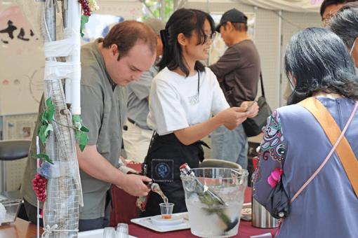 福山ばら祭2日目の夜、世界バラ会議福山大会2025の歓迎レセプションが福山城公園プロムナードで行われました。ここでは各国から来日された参加者向けに、「さくら」がウェルカムドリンクとして提供されました。