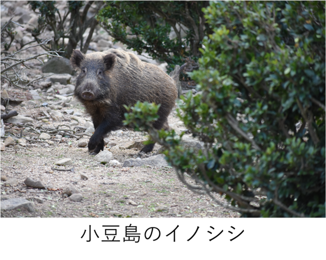 学長から一言:世の中では今、人間の居住地に頻繁に闖入するクマの被害で話題沸騰です。対策には生態研究が欠かせません。同様に、野生動物のイノシシもしっかりと研究することが必要です。かつて絶滅していた小豆島で発見が続き、海を渡って定着したと思われるイノシシの足取りの科学的調査に取り組む生物科学科の石塚講師。動物と人間の平和的な共存のためにも、興味深い研究成果を続々と発表して下さい。期待が大いに膨らみます。