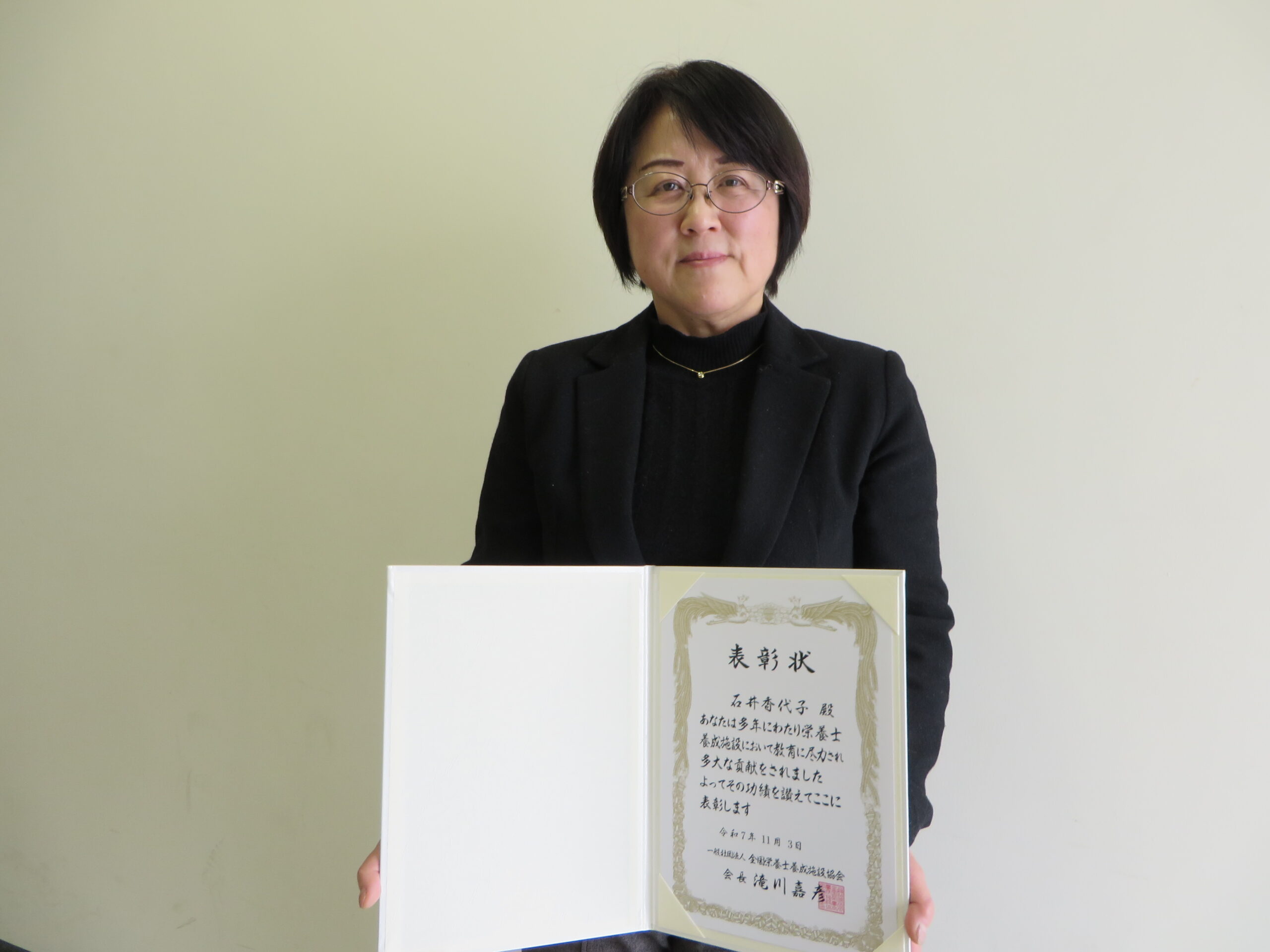 健康栄養科学科の石井教授が令和7年度 全国栄養士養成施設協会「栄養士・管理栄養士の養成施設に勤務する教員のための会長顕彰」を受賞されました!