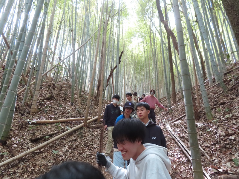 着任したばかりの石塚講師ですが、早速、自動撮影カメラを使ったイノシシの調査に関する実習を行いました。生物科学科のある17号館から歩いて1分の場所には森があり、その中を歩くと、イノシシの堀跡や野生動物の歩いた痕跡が多く見られます。ほとんどの哺乳類は夜行性ですので、実習を行う昼には見ることができません。そこで、自動撮影カメラの出番となります。今回は、福山大学東側の森と、サッカー場奥の竹林という環境の違いにより、イノシシの出現に差があるかどうかを調べました。