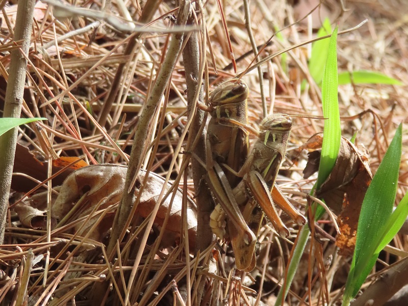 最初の週は昆虫を中心とした動物と植物探しから始まりました。大学生にもなって虫取り?と思われるかもしれませんが、こちらはいたってまじめです。この実習では、身の回りの生物を知ること、そしてその遺伝子の分析手法を身につけることを目標としています。最初の2週間で、大学の外の田んぼや畑の周辺から歩き始め、竹林、池の周辺と歩き、昆虫や植物、カエルやヘビなどの脊椎動物、イノシシの痕跡などをみつけることができました。実習日は毎日5000歩程度は歩いたでしょう。