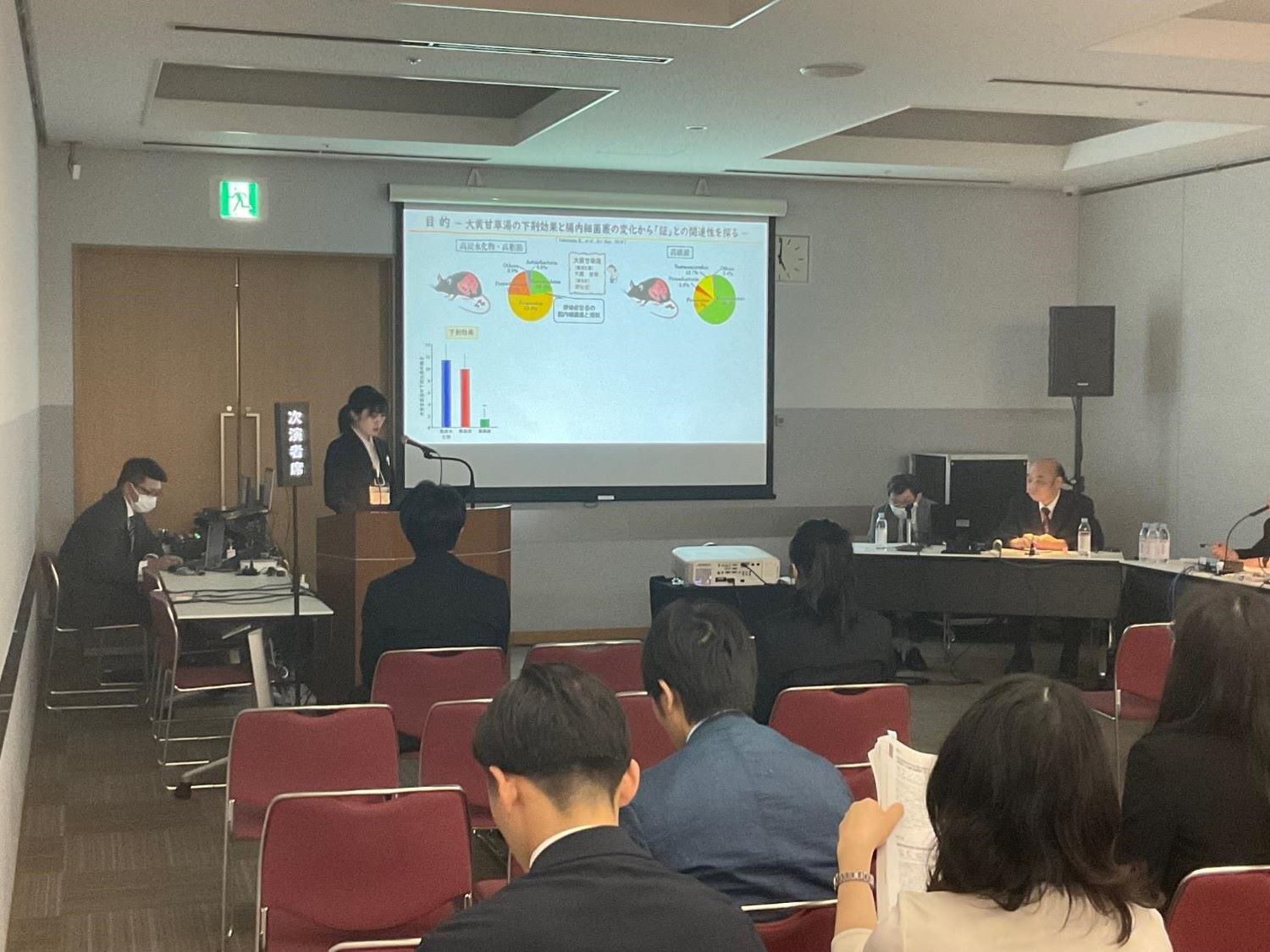 本発表では、食習慣による腸内細菌叢(そう)の違いが便秘症の改善に用いられる大黄甘草湯の効き目を左右する(レスポンダー・ノンレスポンダー)という、これまでの研究で得られた知見について、腸内細菌叢の変化はもちろんのこと、関与する大黄甘草湯成分の同定や、腸管免疫系の関わり、短鎖脂肪酸など腸内代謝産物の変化にも着目して、詳細なメカニズムを探求した内容を発表しました。本研究のような食習慣による腸内細菌叢の変化と漢方薬のレスポンダー・ノンレスポンダーとの関連性を解明する研究により、漢方薬の有効成分の薬理作用だけでは説明できない、漢方薬の新たな作用機構を見出せる可能性が秘められています。