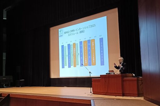 学長から一言:新年度に入り、今年も本学が誇るBINGO OPEN インターンシップが始動です。最初からエンジンフル回転で関係者の力のこもった説明に、参加した新入生の皆さんは引き込まれ、期待が大いに高まったことでしょう。これから続々と実施予定の各種の企業説明会などの機会を利用して、将来につながり、自分の夢の実現に向けたインターンシップに主体的、積極的に取り組んでもらいたいものです。