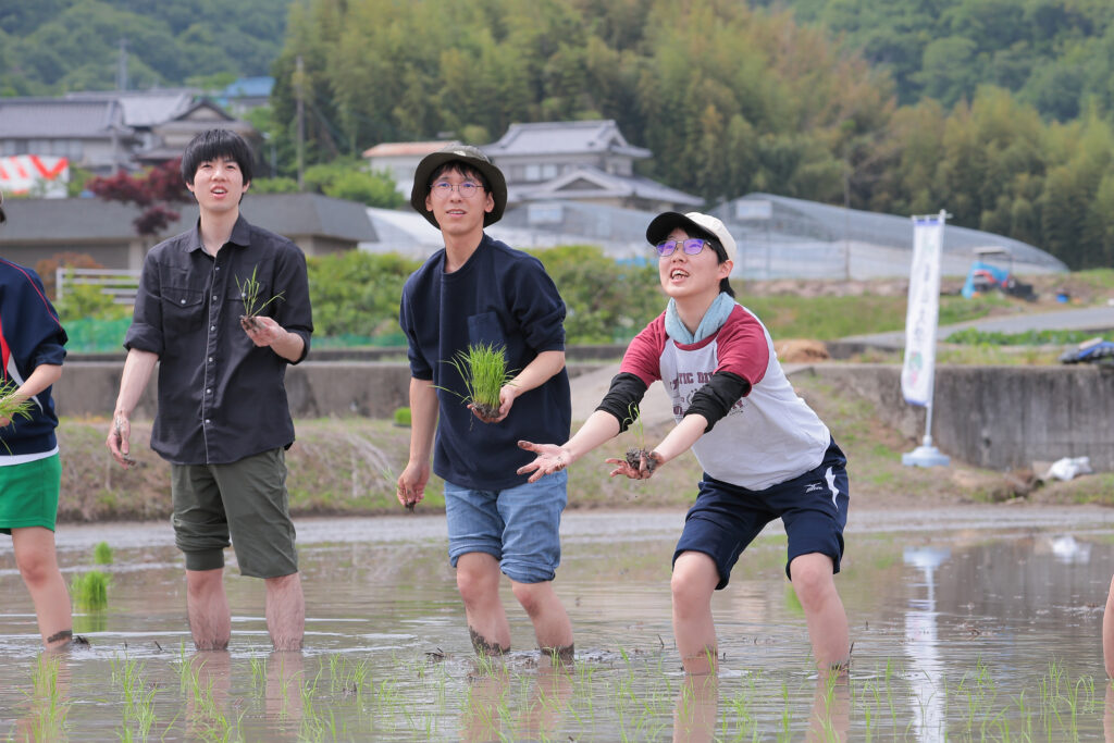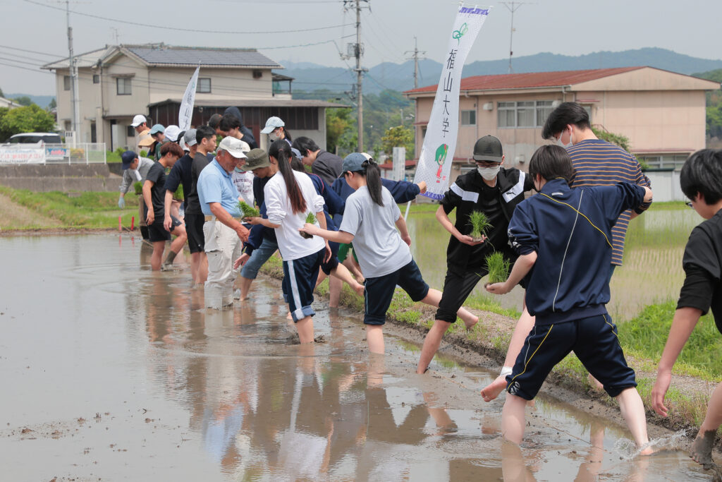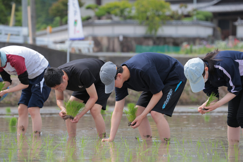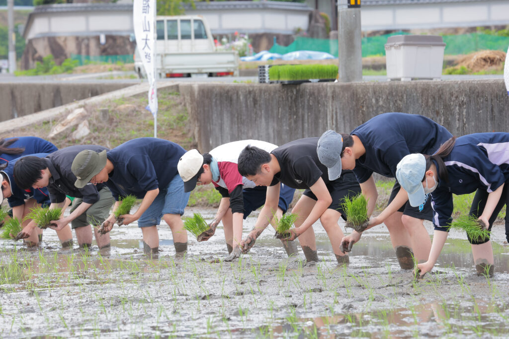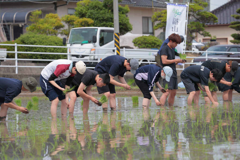 学生の中には未経験者もいましたが、苗を植えていくにつれてコツを掴み、山本学部長や廻野さん高橋さんの掛け声に合わせて学生の楽しそうな姿が垣間見えました。