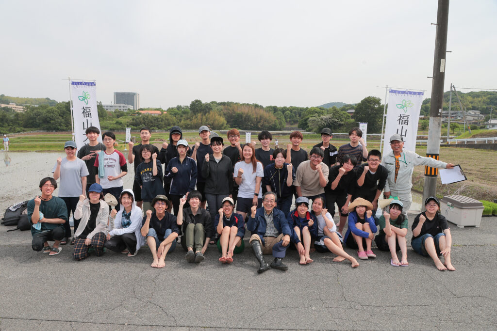 5/23(金)、福山大学の名物行事である田植えが行われました。大塚学長が顧問を務める稲作研究同好会(略称は稲研)所属の学生と、生命工学部生物科学科の学生が参加し、教職員合わせて総勢39名が田植え体験をしました。(投稿は企画・文書課)