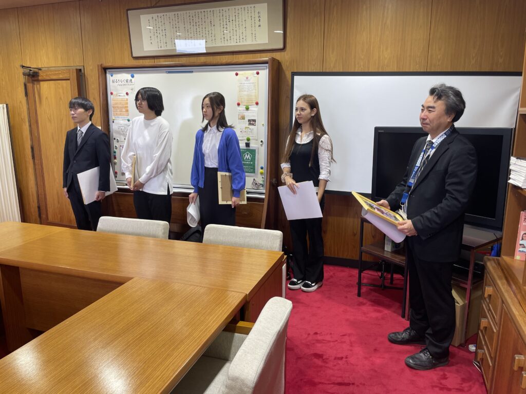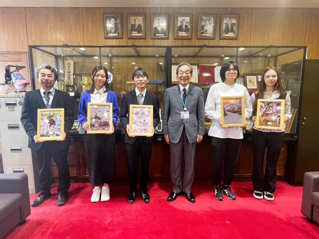 5月26日(月)のお昼休みに、学長室にて授賞式を執り行いました。受賞作品に選ばれた皆さん、この度は誠におめでとうございます!