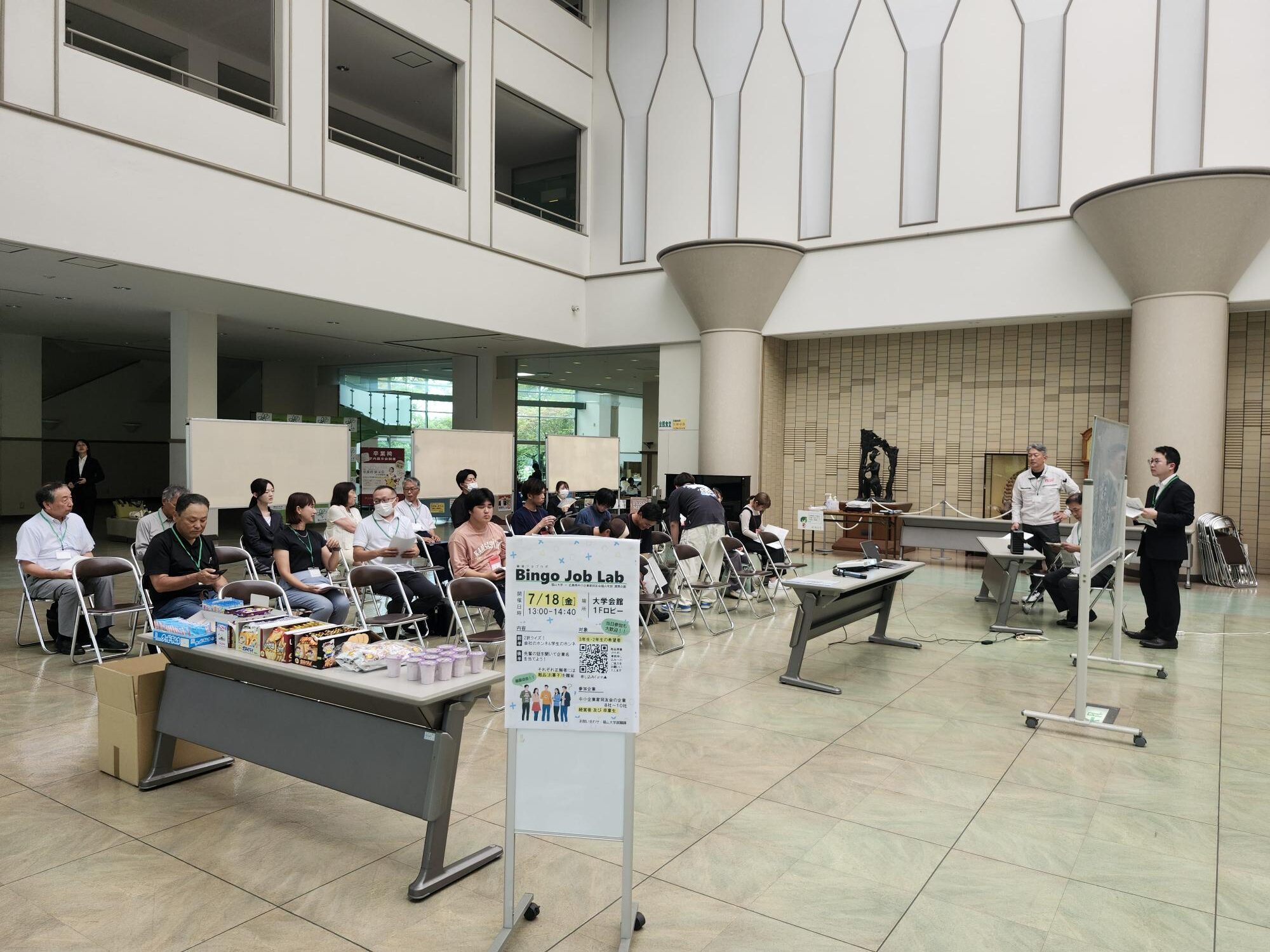 広島県中小企業家同友会に所属する備後圏域10社の経営者と若手社員4名、本学の学生15名(3年生と2年生)が参加した恒例の「Bingo Job Lab」を7月18日に開催しました。その様子をFUKUDAI Mag.メンバーの平(就職課)がご報告します。