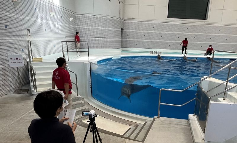 認知実験を行うには、その行動を証明するための実験デザインと、それを実施するための事前トレーニングが必要不可欠です。そしてこのトレーニングは、水族館の飼育員の方々の協力がなければできません。本研究の成果は、研究者と水族館飼育員の連携によるものです。