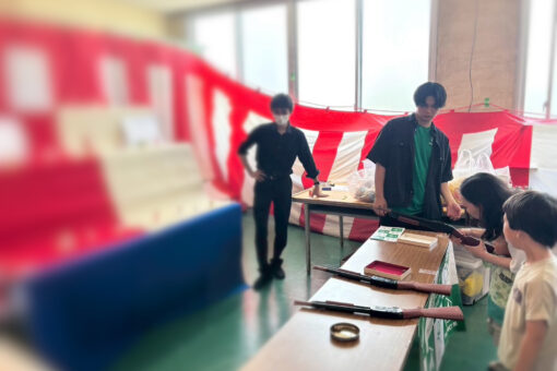 開始してから数分は、中々お客さんの姿が見えず、とても不安になりましたが、私たちもイベントのビラ配りに参加し、積極的に宣伝しました結果、だんだんと子連れの方や中高生の方が射的とお化け屋敷に来てくださるようになりました。射的は、客足が途絶えず、途中で景品のお菓子がなくなりそうになり、急遽景品予定ではなかったおもちゃを追加しました。おもちゃを景品にしたことがなかったので、売れ行きがどうなるか心配でしたが、おもちゃをゲットしてとても喜ぶお子さんがいて、それがとても印象に残りました。