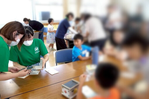 この企画は小学生とその保護者を対象として、5年前から開催している夏休みのイベントです。もともとは東村に本社、南松永に工場がある特殊な木材加工が専門の東和工業株式会社様から、プロジェクトMとコラボして何か地域に貢献できることをやりたいとの申し出があり、同社提供の材料を使って工作をするイベントとして始まりました。