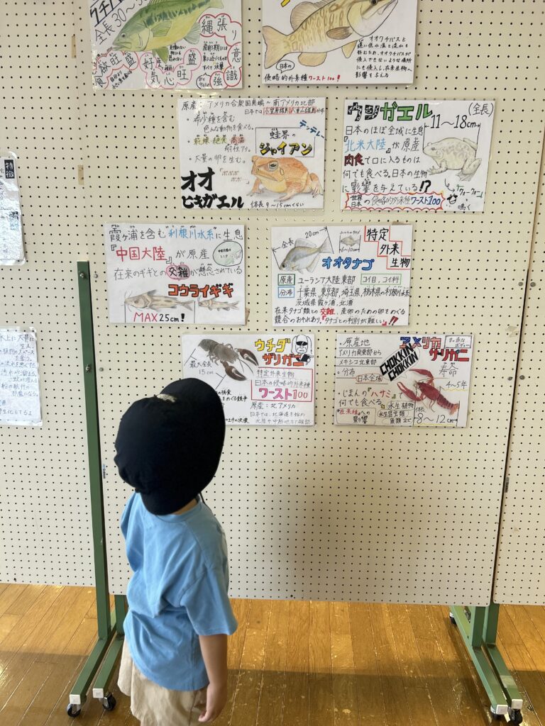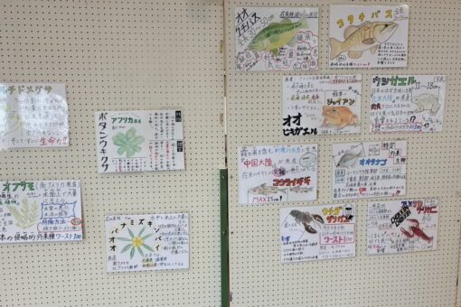日本で外来種に指定されている生物のパネル展示