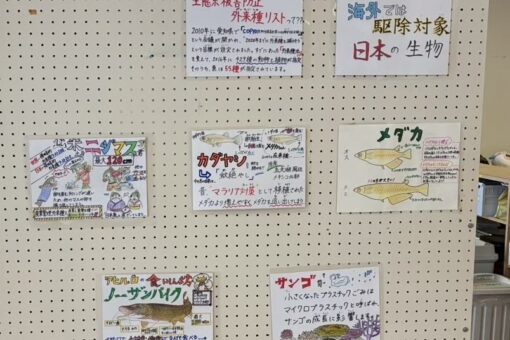 海外では駆除対象となる日本の生物のパネル展示