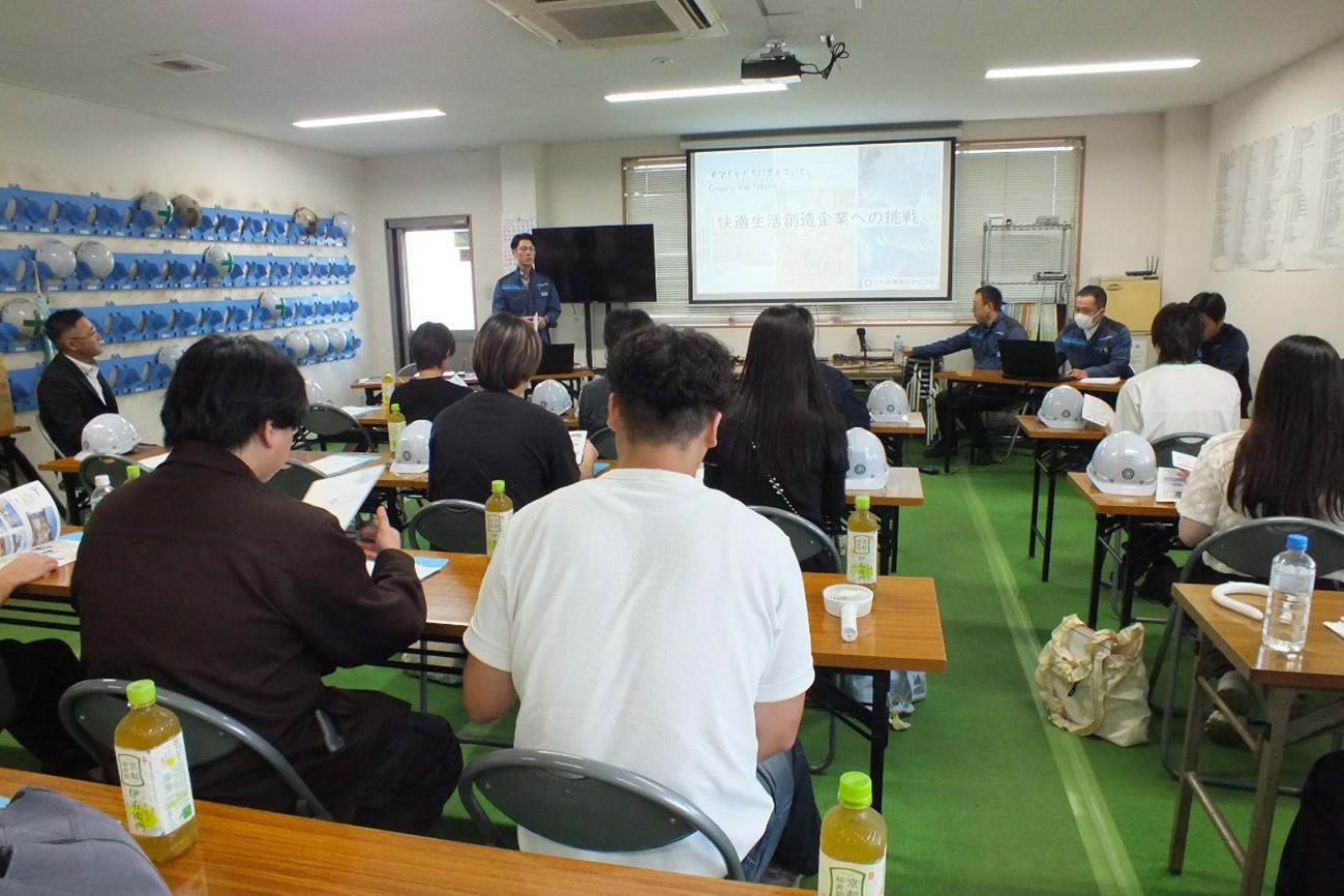 午前中は三和鉄構建設株式会社様をお訪ねし、事業概要などをご説明いただいた後に、工場を見学しました。