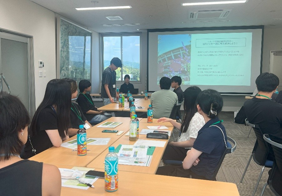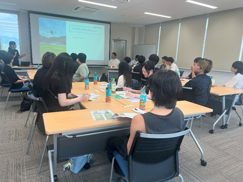 農業法人・株式会社ハラダファーム本多の本多社長様にもお越しいただき、インターンシップ形式で「農家さんの困りごと」を学生が一緒に考えるグループワークを実施していただきました。