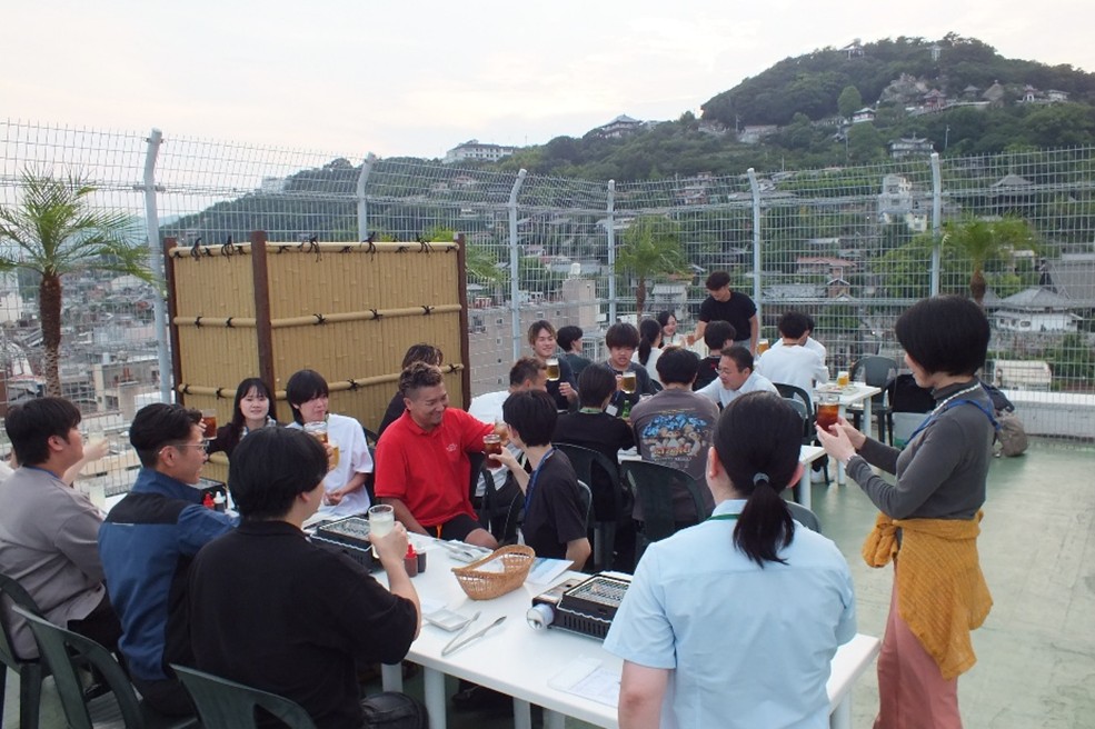 夜には、山陽工業株式会社、山脇酸素株式会社、株式会社瀬戸内百姓、株式会社SHOYAのみなさまをはじめとする地域の企業関係者とのディナー交流会が催されました。