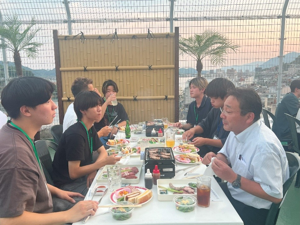 バーベキュースタイルの和やかな雰囲気の中、学生たちは直接質問を投げかけ、経営者や企業の方々の生の声を聞くことで、教室では得られない学びを体験しました。学生たちは企業の方々と直接言葉を交わす貴重な時間を過ごし、「地域企業が持つ底力と温かさ」を感じ取った時間となりました。
