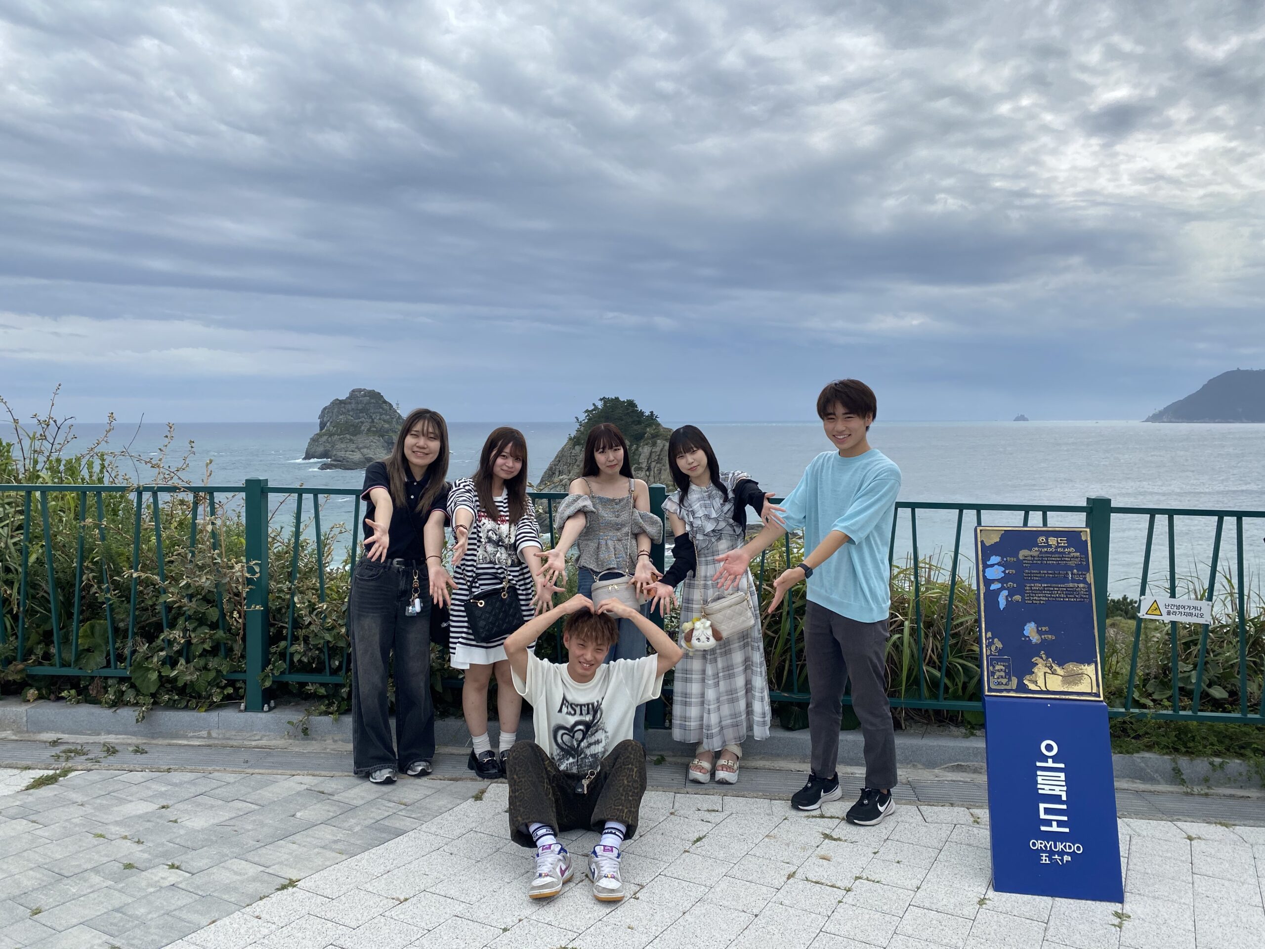 村井さん(2年生) 研修中に訪れた観光地の中で、特に印象に残っている二つの場所を紹介します。一つ目は「五六島(オリュクト)」です。5つの島に見えたり、6つの島に見えたりすることからその名が付き、岩の先端に張り出した展望台「五六島スカイウォーク」が有名です。当日は天候に恵まれずスカイウォークは歩けませんでしたが、空気がきれいでとても気持ちの良い場所でした。二つ目は「海雲台(ヘウンデ)」です。韓国で最も有名なビーチの一つで、写真スポットも多くありました。私たちは夜に訪れましたが、夜景も非常に美しく、貴重な思い出になりました。