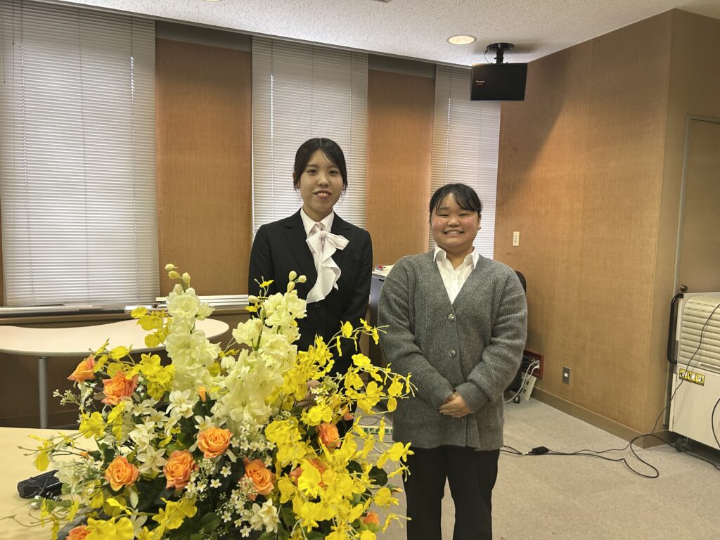 学生司会者(左から人間文化学科3年吉田侑生さんと3年石原未来さん)