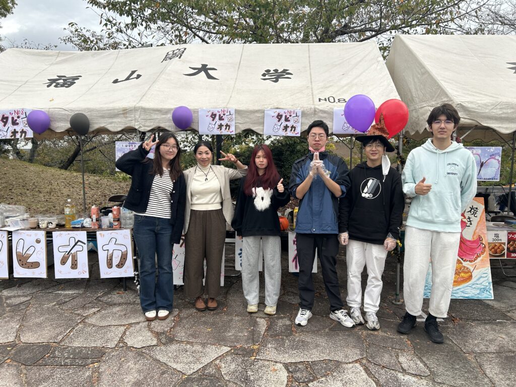 (たこ帽子をかぶっているのは足立教授です。お隣の足立ゼミのたこ焼きブースには、大変お世話になりました!)