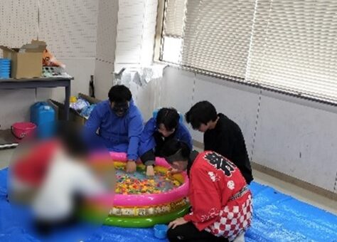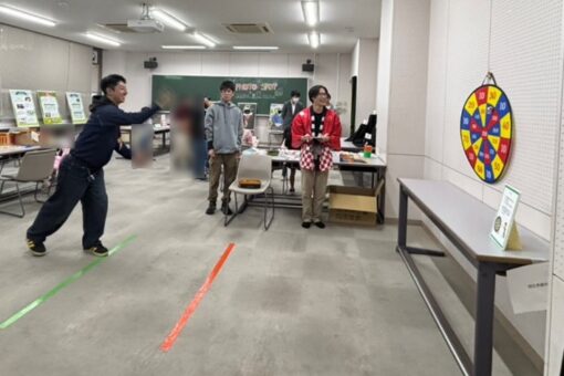 縁日の出し物では、スーパーボールすくい、射的、ダーツを用意しました。小学生からご家族連れ、大学生からご高齢の方まで、幅広い年齢層の来場者の方々に遊んでいただけました。