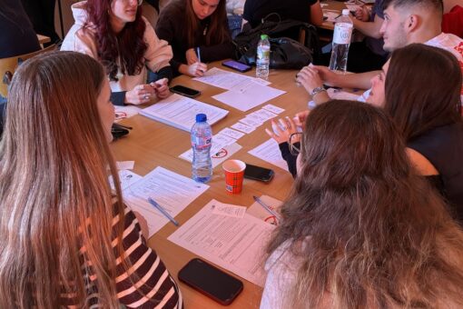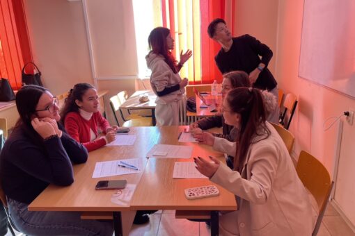 学生たちはすぐにルールを理解し、「この課題を解決するには、こういう力が必要だよね」「このスキルはこのミッションにも使えるんじゃない?」など活発に意見が飛び交い、教室は大いに盛り上がりました。さらに経済産業省の「社会人基礎力」についても紹介し、ブルガリアではどんな力が求められるのか意見を共有しました。