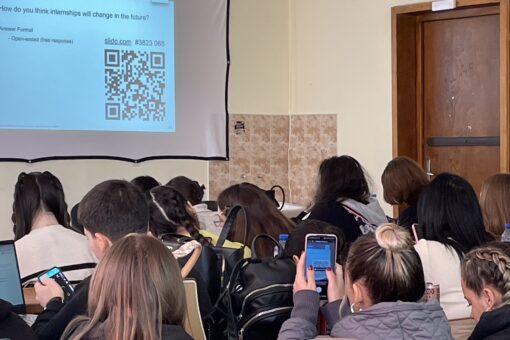 ブルガリアと日本のキャリア支援や就職活動に関する文化・制度の違いに学生は興味津々。オンラインアンケートで意見を募り、両国の違いについての意見交換も行われ、講義後にも多くの質問が寄せられました。