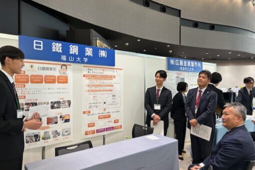 学長から一言:地元8大学の学生諸君がそれぞれ選んだ企業を取材し、その成果を発表し合い、出来映えを競うというジョブサミット。本学は経済学科からの4チームが参加し、企業・工場見学のほか、電話やメールによる当該企業についての調査・研究成果をポスターにまとめ上げるとともに、学生目線での気付きを企業関係者も交えたトークセッションでも発表。広島県中小企業家同友会主催のこの催しを通じて、参加した皆さんは「働く」ことの意味について新たな発見があったことでしょう。