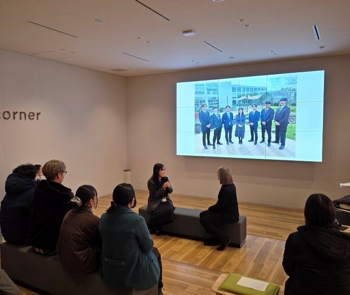 第6回は2025年12月5日(金)に、未来創造館1階のDisplay Cornerで開催しました。講座は、プレゼンターとインタビュアーの会話形式で行われます。今回のプレゼンターは、工学部建築学科の大畑友紀講師、インタビュアーは大学教育センターのSuzuki Heather Anne助教です。テーマは「今、やりたいことに挑戦する。地方公務員、国家試験、進学、子育て、転職」として、大畑講師の驚くほどアクティブな取り組みが紹介されました。