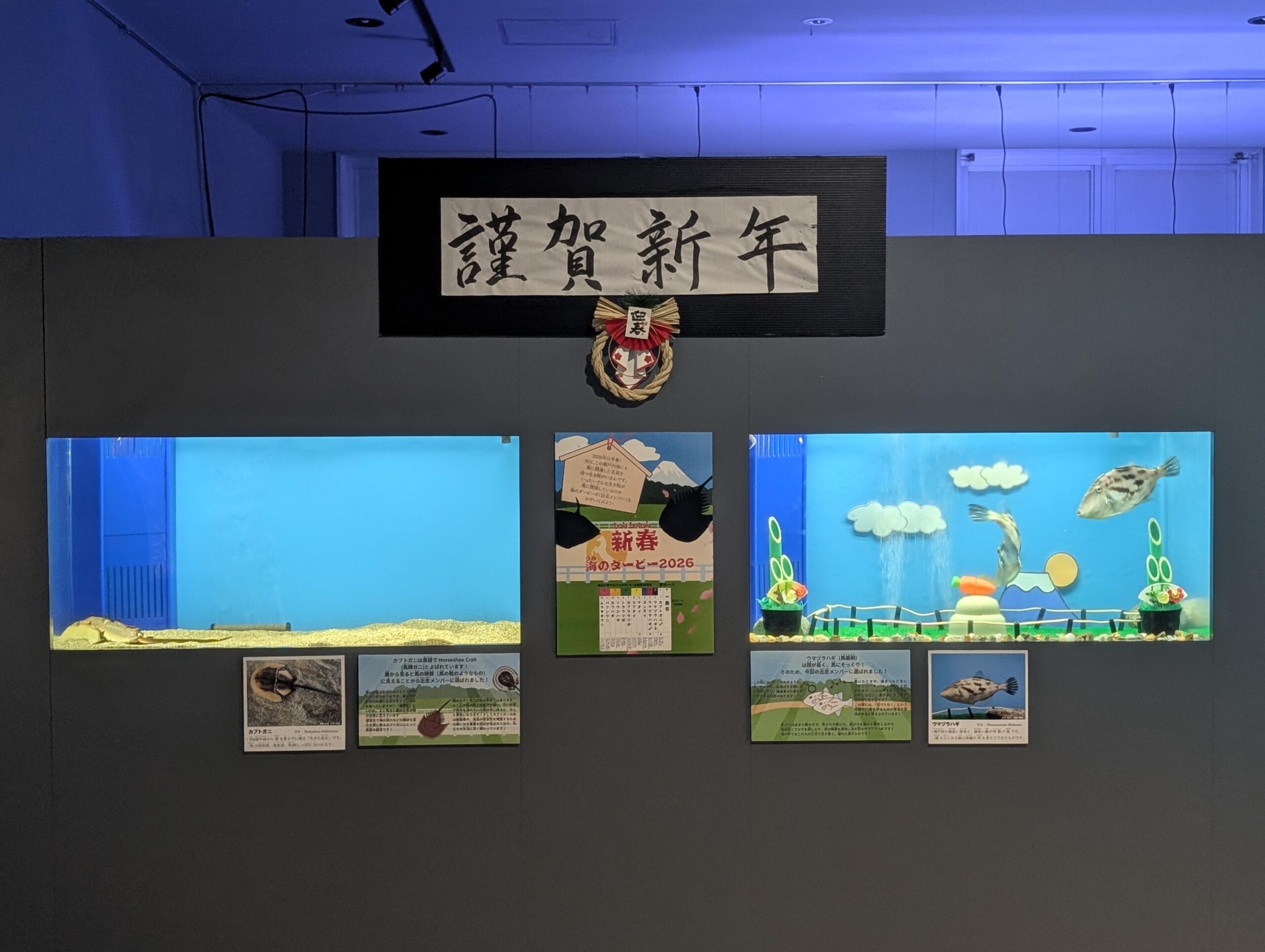 【海洋生物科学科】マリンバイオセンター水族館が恒例の干支展示を開催中~新春 海のダービー2026~