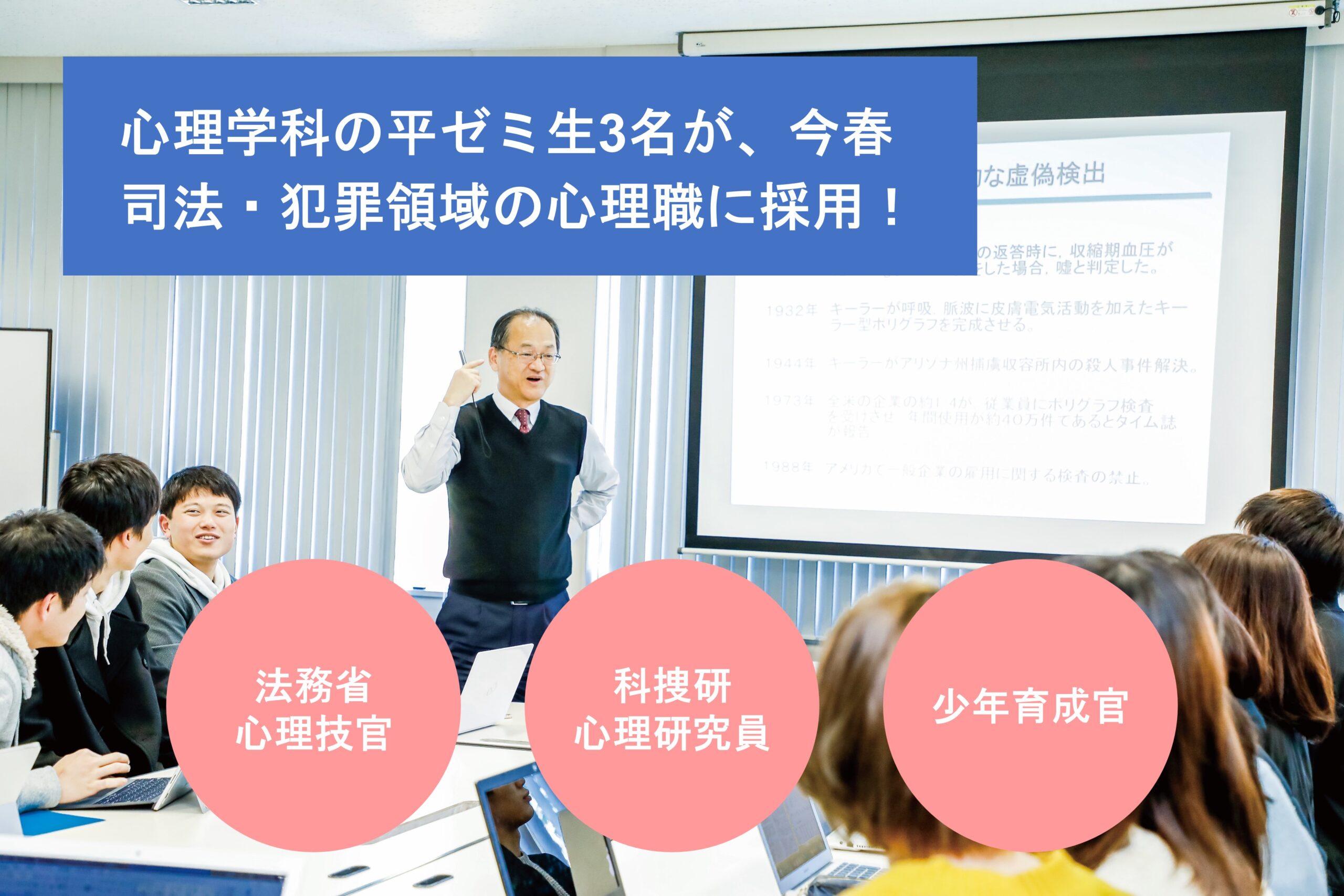 【心理学科】法務省心理技官(矯正心理専門職)、科学捜査研究所研究員、 少年育成官に採用決定!