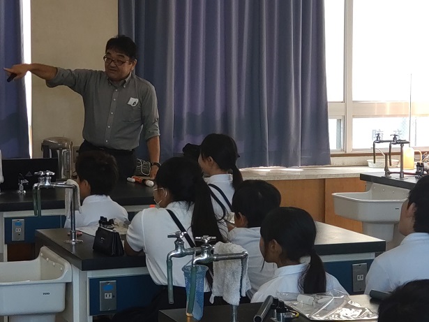 佐木島の鷺港では鷺浦小学校の教頭先生が桟橋まで出迎えに来て下さっていました。小学校につくと、理科教室に全校生徒が待ってくれていました。昨年度実施したものづくり教室に参加してくれた児童もいました。前回の内容を覚えていてくれた児童もいてうれしかったです。授業には、校長先生、教頭先生だけでなく多くの先生方、NHKやケーブルテレビの取材の方などが同席され、少し緊張しながら実施しました。