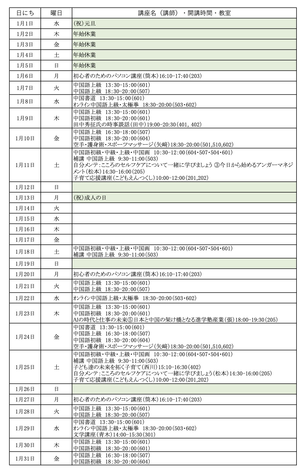 まなびステーション2025年1月の講座スケジュール(2024/12/26更新)