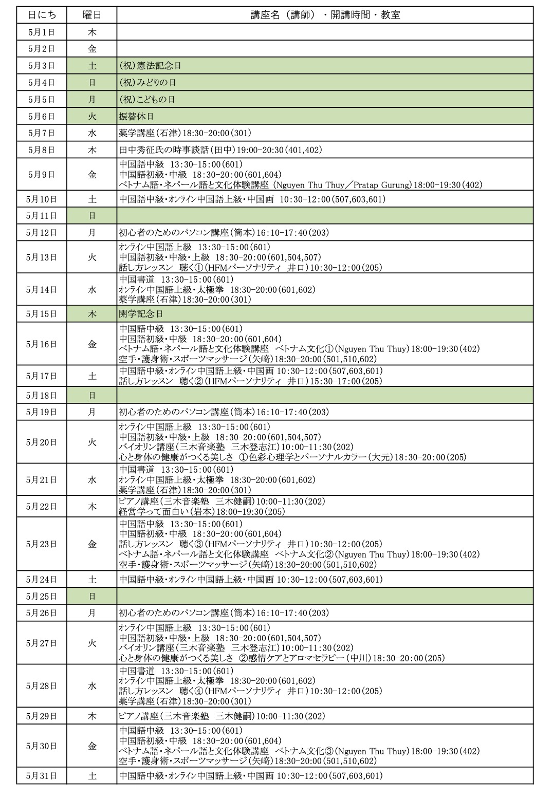 まなびステーション2025年5月の講座スケジュール(2025/4/28更新)