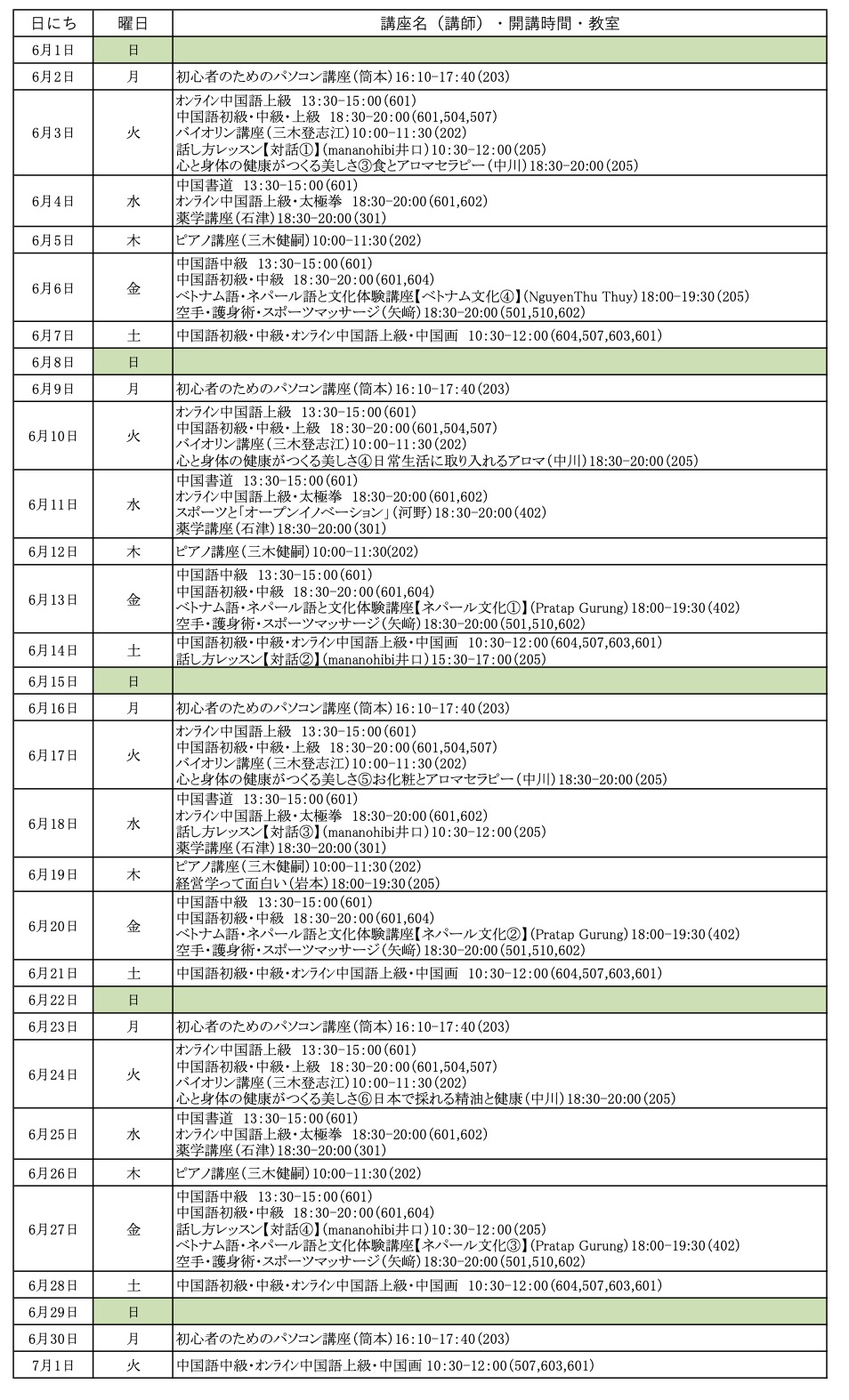 まなびステーション2025年6月の講座スケジュール(2025/5/28更新)