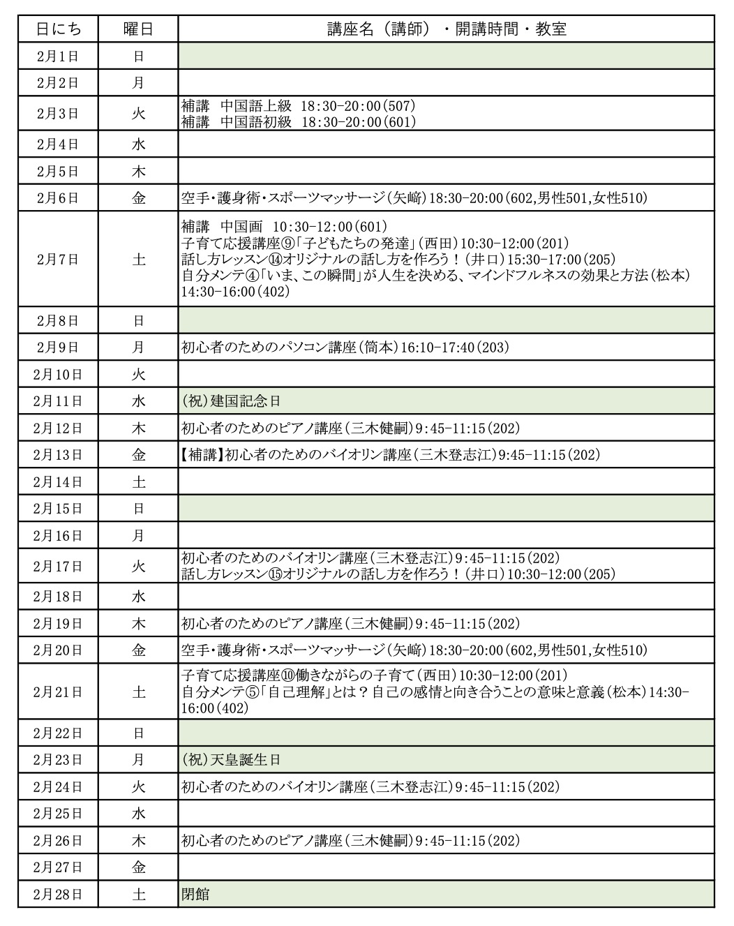 まなびステーション2026年2月の講座スケジュール(2026/1/27更新)