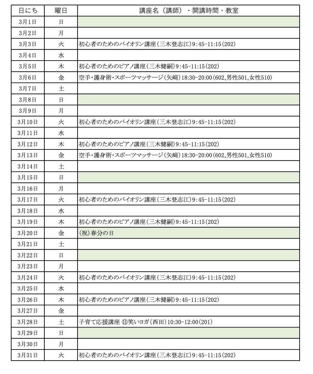 まなびステーション2026年3月の講座スケジュール(2026/2/27更新)