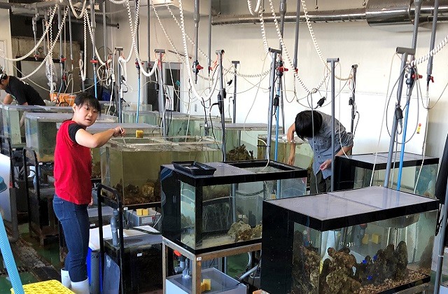 バックヤードでは、展示準備中の生き物を飼育したり、アクアリウム科学実習、学芸員実習、卒業研究などを行なっています。