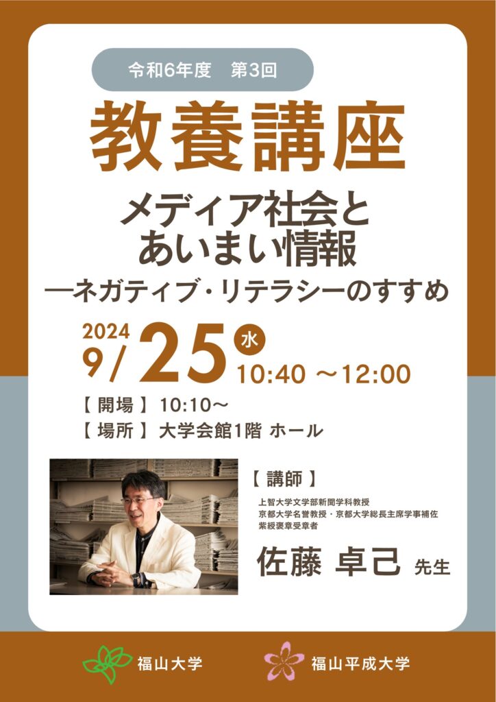 【演 題】 メディア社会とあいまい情報 ―ネガティブ・リテラシーのすすめ