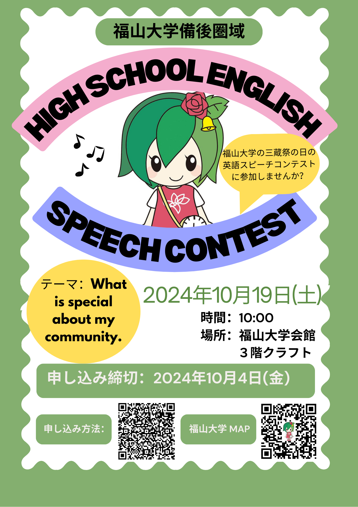 2024年度 第1回備後圏域高校生英語スピーチコンテストの受付期間を10月4日まで延長しました