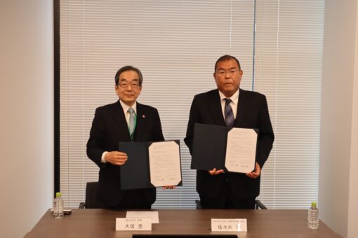 (左)福山大学 大塚豊 学長 (右)岡山県立笠岡工業高等学校 佐々木隆 校長