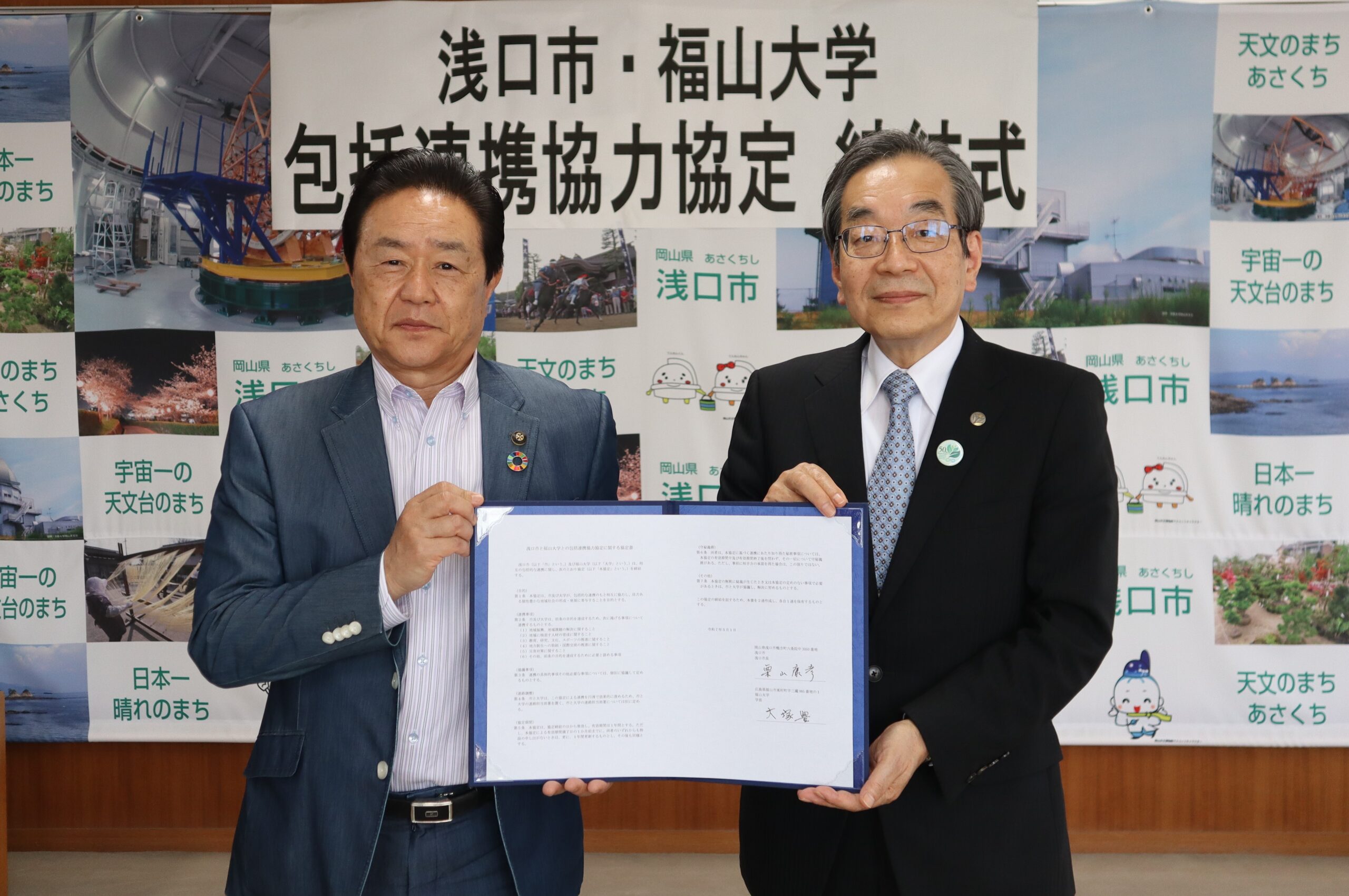 (左)浅口市 栗山康彦 市長 (右)福山大学 大塚豊 学長