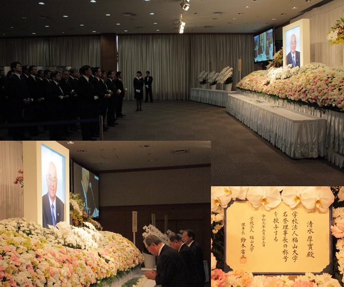 今日の学校法人福山大学の発展に多大なるご貢献を頂いた学校法人福山大学 故 清水厚實総長が平成31年4月30日に88歳でご逝去になられ、令和元年6月1日(土)学校法人福山大学宮地茂記念館9階ホールで、お別れの会が執り行われました。