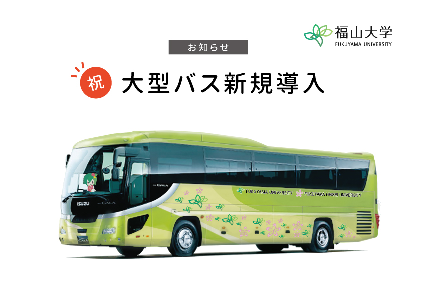 2018.06.13 【お知らせ】観光仕様大型バス1台を新しく導入 この度学校法人福山大学は、クラブ遠征用に観光仕様大型バス1台を新しく導入します。 平成30年7月18日(水)に納車式を行い、主にクラブ活動送迎用として運行を開始します。 観光仕様バスのため、乗り心地は抜群! 遠征における長距離移動も快適に過ごすことができることでしょう。 この記事をシェアする