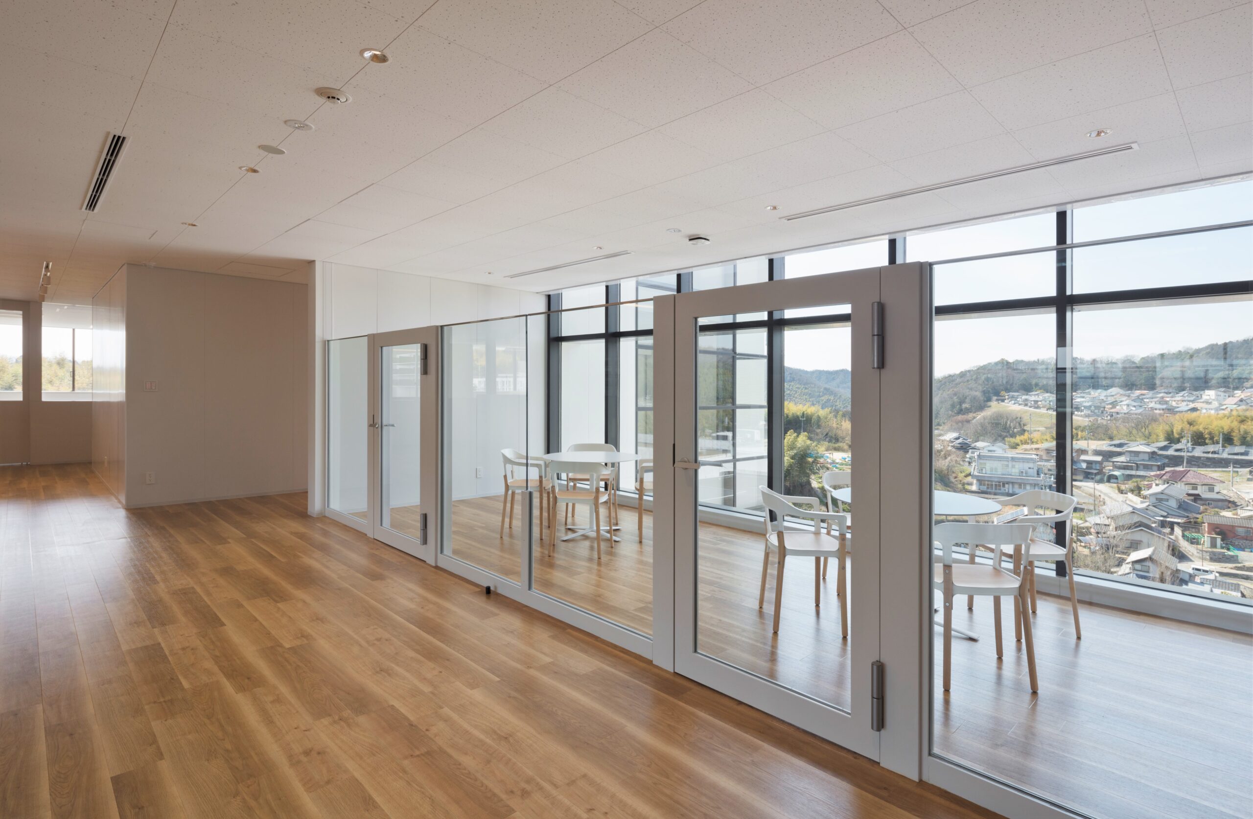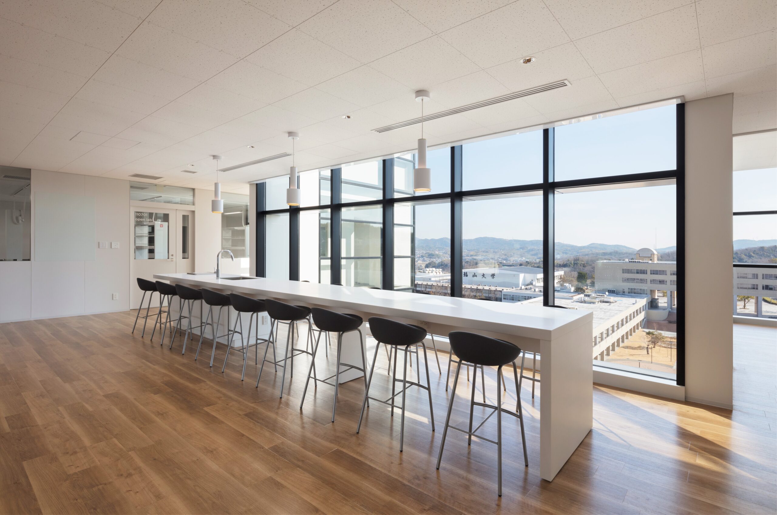 1階には新しいラーニングコモンズに対応したスペースとして、ICT教育推進拠点となるコミュニケーションエリア、大型ディスプレイを利用した映像の展示やゼミなどで利用可能なディスプレイコーナー、ブース席によるグループワーク活動の場としてのインフォダイナー等、学生の多様な学びに対応するICT設備を整備したフロアーが設置されています。2階には168名(可動椅子)、3階には165名(固定椅子)収容可能な講義室を設置し、4~10階には各研究室間の間仕切りを除いた今までにない実験室(オープンラボ)も設置されています。さらに、11階には素晴らしい瀬戸内海の景色が見渡せるクロッシングカフェ、備後地域発祥の「中継ぎ」と呼ばれる伝統技法で織った畳を敷いた茶室等があります。また、『未来創造館』の隣に新設する研究動物棟は、「環境省実験動物の飼養及び保管並びに苦痛の軽減に関する基準」に準じて建設した最新施設です。